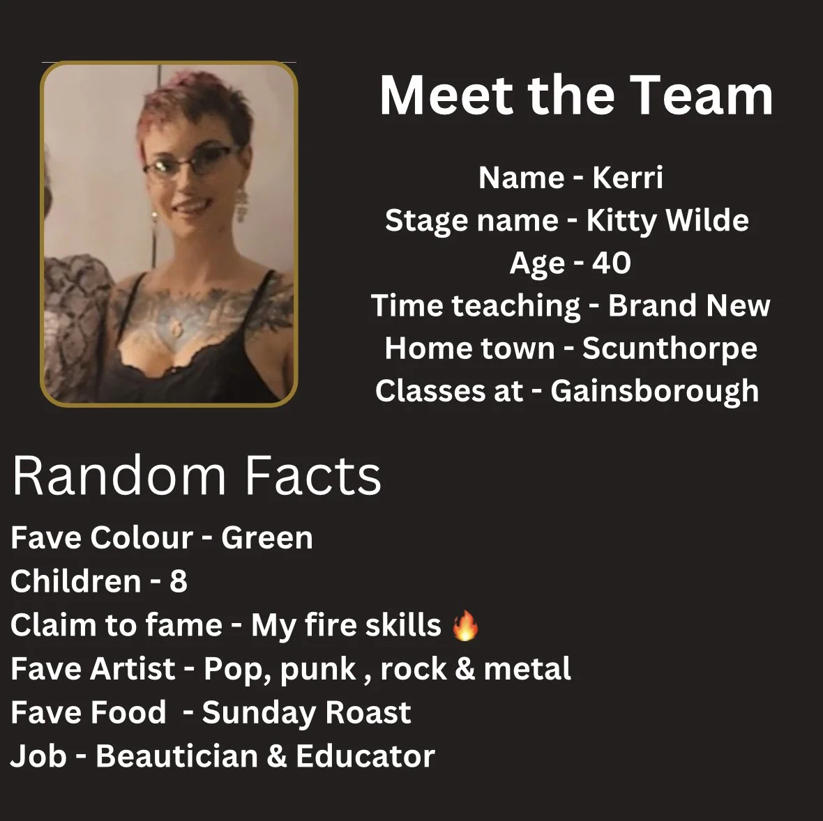 Last but by no means least we have our youngest of the group!!! Fresh from her first ever burlesque class she took over from her then instructor and is absolutely smashing it 💪🏼